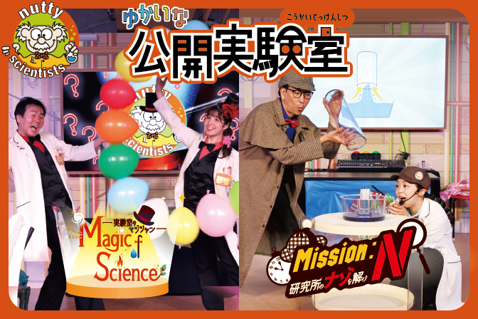 小学校として使われていた時のままの階段を2階に上がると、「ゆかいな公開実験室」があります。ここでは、水や空気、宇宙などをテーマにしたストーリー仕立てのサイエンスショーを開催しています(有料)。博士と一緒にさまざまな実験に挑戦しながら、科学の不思議を体感しましょう!みんながステージに上がってお手伝いすることもあるので、博士を助けてあげてね。